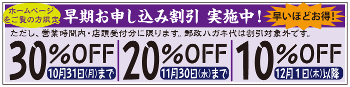 ※出来上がりのお渡しは、店頭もしくは郵送・宅配等となります。